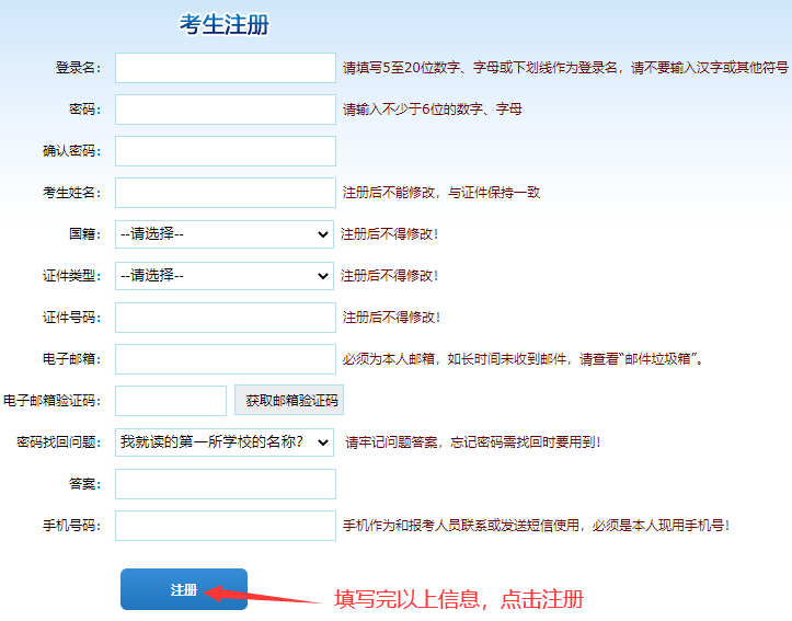 無論是參加專場考試、還(hái)是統考的小夥伴都(dōu)可以先到官網進(jìn)行考試賬号注冊,記得要保存好(hǎo)登錄密碼哦~